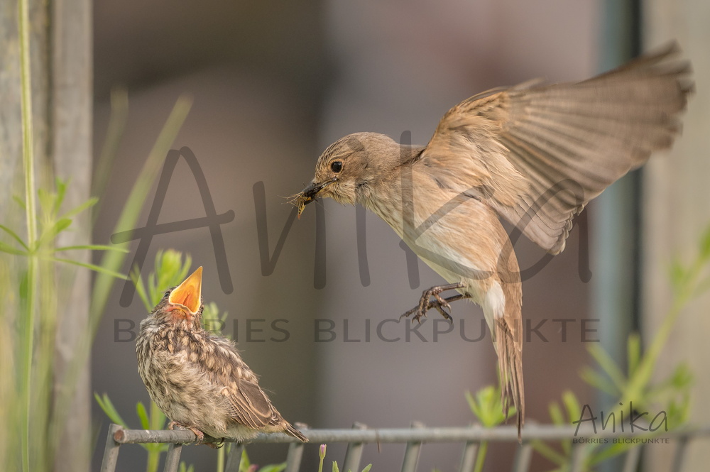 Grauschnäpper meckert Rauchschwalbe an